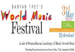Banyan Tree's World Music Festival is an event that took place on 03-May-2013 in Hyderabad.