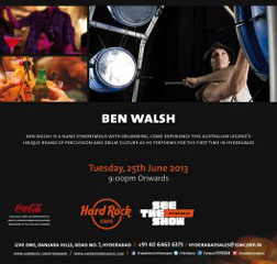 Ben Walsh Live @ Hard Rock Cafe is an event that took place on 25-Jun-2013 in Hyderabad.
