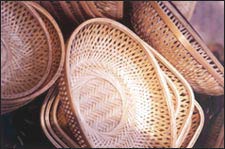 You can find door curtains made of bamboo, which can be washed and reused again. There are ducks and a tractor made of bamboo, handlooms with bright colours and designs, garlands and hangings made from jute, and also show pieces made from dried flowers. Collections of sofas, tables, center-tables and baskets made from cane are also worth a buy.