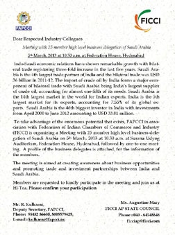 Meeting With 25 Members High Level Business Delegation Of Saudi Arabia is an event that took place on 05-Mar-2013 in Hyderabad.
