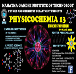 Physicochemia 2013: National Level Symposium On Material Science & Technology is an event that took place between 08-Mar-2013 and 09-Mar-2013 in Hyderabad.
